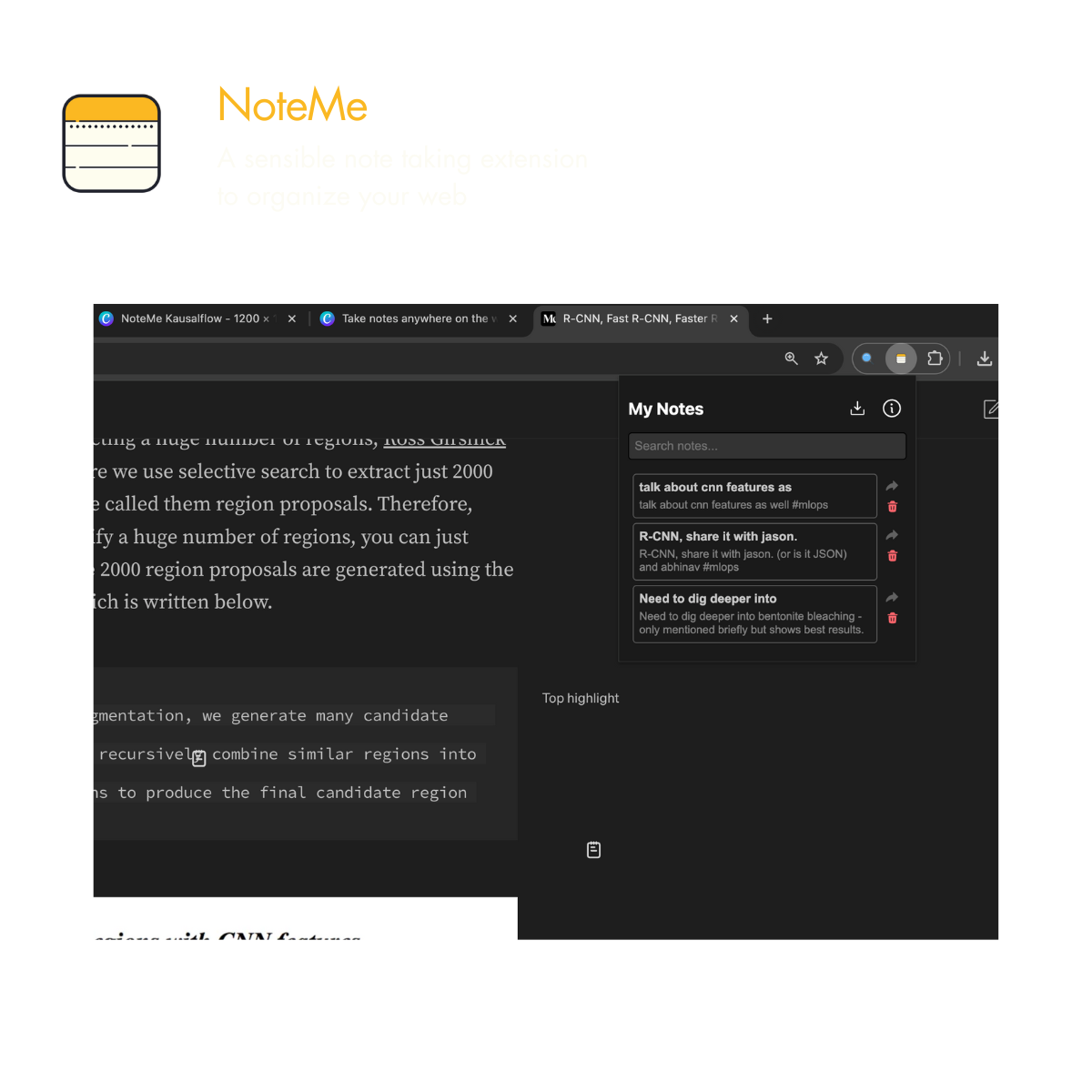 NoteMeNoteMe is a Chrome extension that empowers you to place notes anywhere on any website and access them all in one convenient popup. Your notes stay 100% local and private—no internet or external servers involved. Instantly jump back to the exact spot on any page, and easily share notes with others Chrome General and Interdisciplinary Project Research GTD Note-taking Reference Management Chrome Web Store Add notes anywhere: Place notes at any location on any webpage. Centralized access: View and manage all your notes from a single popup. Instant navigation: Click a note to jump directly to its original spot on the website. Tab awareness: Automatically opens the correct tab or switches to it if already open. Easy sharing: Share notes with others for quick import and collaboration. Privacy-first: Your notes remain completely private and never leave your browser. Works fully offline; no APIs or external servers used. User-friendly interface: Clean, intuitive design for effortless note management.